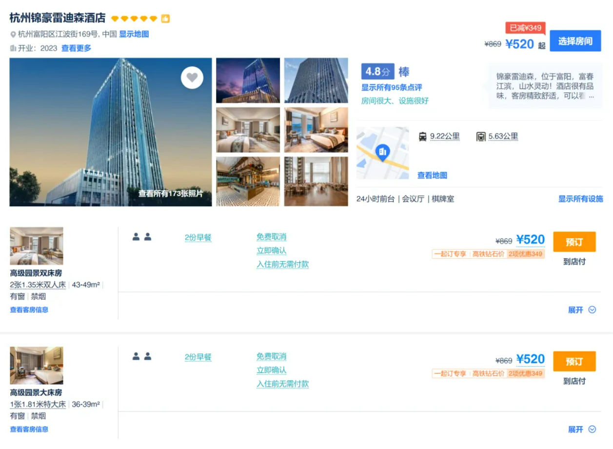宿:富阳锦豪雷迪森大酒店