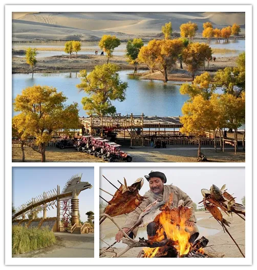 此处有千姿百态的原始胡杨林,塔里木河与渭干河在这里交相辉映,塔克拉玛干大沙漠一望无际。划独木舟、食烤鱼、操罗布泊方言的罗布民族就生长在这里。旅游者在此可涉河水、穿森林、骑骆驼观沙海;可狩猎、滑沙,乘舟捕鱼,听罗布人演唱民歌,围着篝火观看罗布舞蹈,睡茅屋,领略古老的罗布民族风情,享受回归大自然的乐趣。