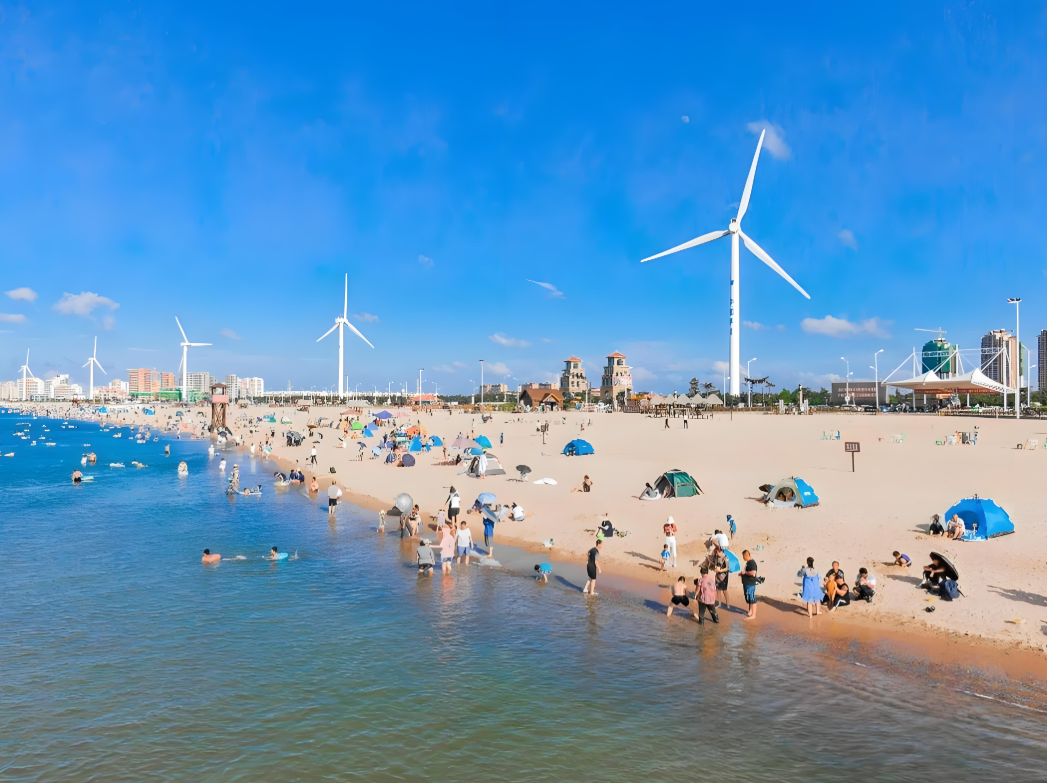 早餐后【金沙滩风景区】(无门票,游览约60分钟),金沙滩呈月牙形东西伸展,全长1000多米,宽300米,拥抱大海,漫步水清滩平,沙细如粉,色泽如金的沙滩,捉蟹拾贝,感受阳光、沙滩、海浪带来的无限欢乐