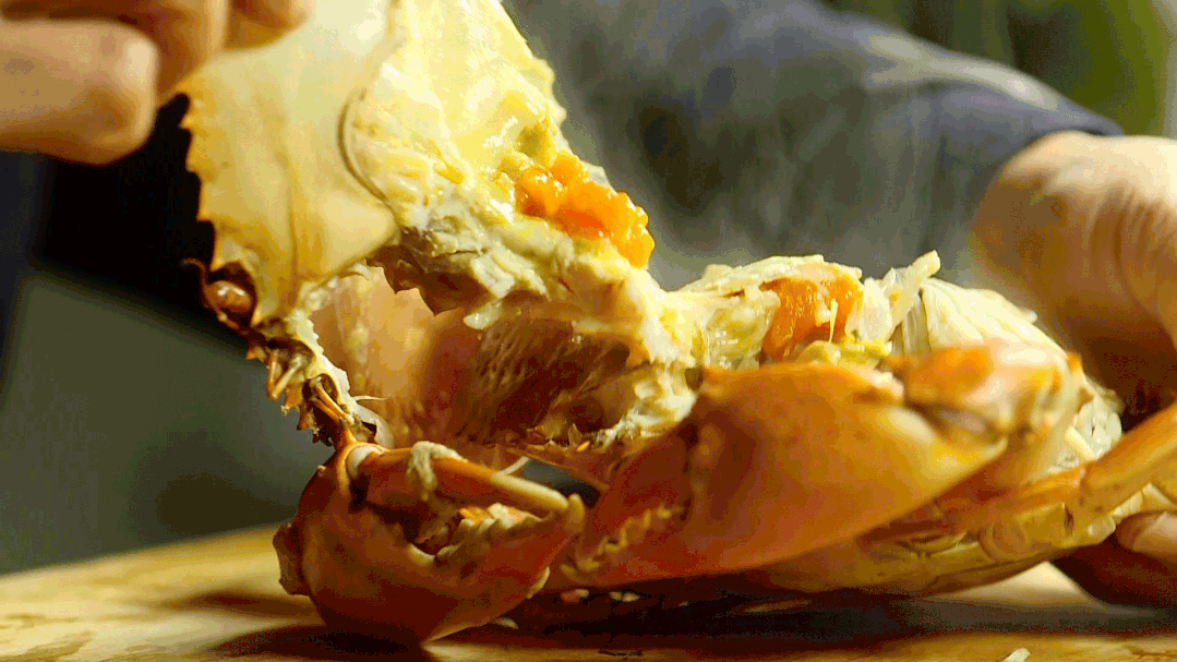 三门青蟹,浙江省台州市三门县特产,中国国家地理标志产品。三门青蟹色泽光亮呈青蓝色,壳薄螯大,体壮饱满,肉质细嫩,香味浓郁,为低脂肪高蛋白食品。三门青蟹具有水分含量低、蛋白含量高、鲜甜味氨基酸含量丰富,其肉质丰满结实、味美鲜甜、口感好。