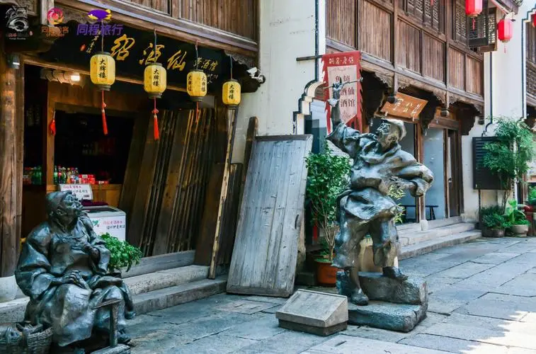 在鲁镇,一组组形象夸张的群雕颇引人注目,几十个故事人物的铜像讲述着一个个鲁迅小说中的故事。有桥可依,有水可嬉,有石可品,有酒可酌,有树可荫,有戏可听,有艺可观,有历史,有现代,有故事,有游乐……这就是鲁镇。