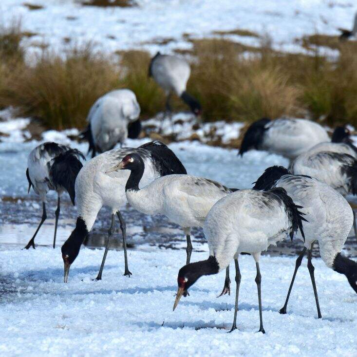 这里是国家一级保护动物黑颈鹤的主要栖息地之一,如果运气好的话,可以看到这些高原精灵翩翩起舞,振翅高飞。