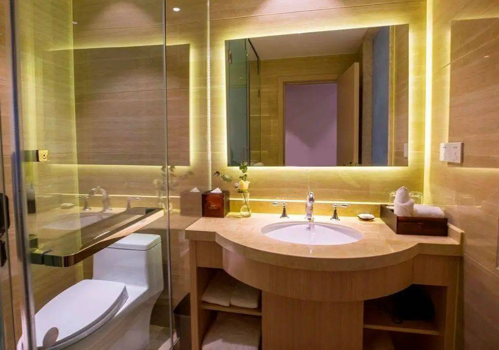 走进酒店,金碧辉煌的接待大堂天然大理石,晶玉瓷砖;中央是巨大的吊顶垂下,灯光让整个空间显得大气又不落俗套,自带贵族气息。