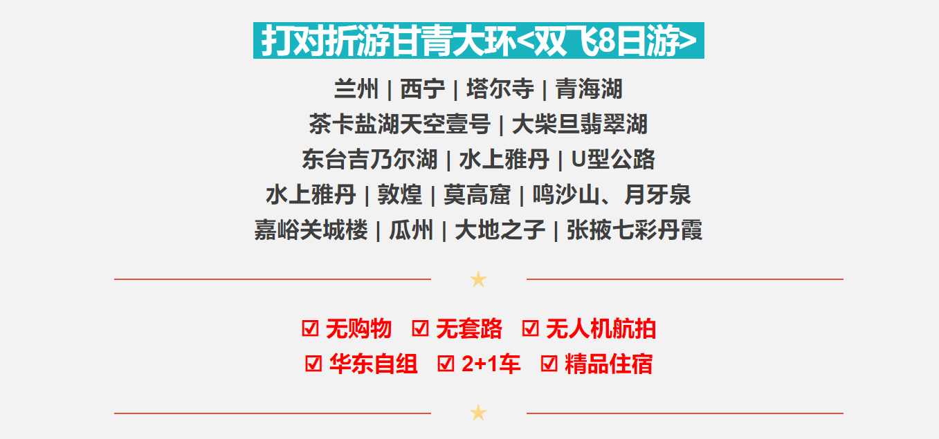 ◈特别安排:游览有着“梦回丝绸之路,一结千年文化“之称的【张掖丹霞口旅游度假小镇】(约1小时),品尝正宗的西北特色手工美食、体验甘肃本地民俗及人文历史、感受灵动而富有民族特色的丝路演艺秀,在小镇你将享受到多方位演绎视觉盛宴,与各种街头氛围演艺、特色巡游不期而遇。