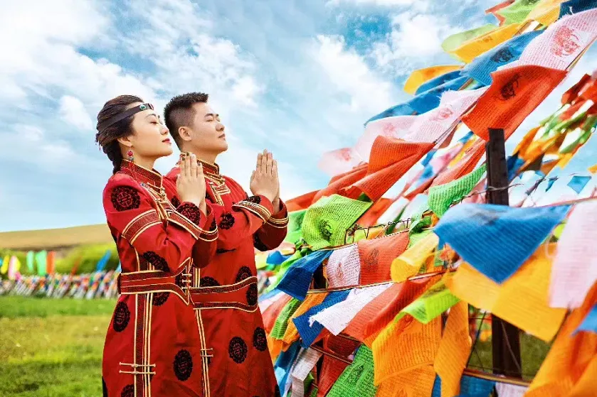 ◈【神圣祭祀敖包活动】(赠送)蒙古民族天人合一的自然崇拜理念,在高耸的敖包下,我们虔诚祈愿,蒙合腾格里长生天定会保佑善良的 您心想事成,可自费观看大型实景演出《蒙古马颂》再现了蒙古民族在草原上的部落纷争,统一草原、驰 骋疆场、保卫和平的英雄画面的过程,用盛大的那达慕大会、精彩的马术展示诉说草原的繁荣,载歌载舞, 在草原上不断成长、壮大的景象。