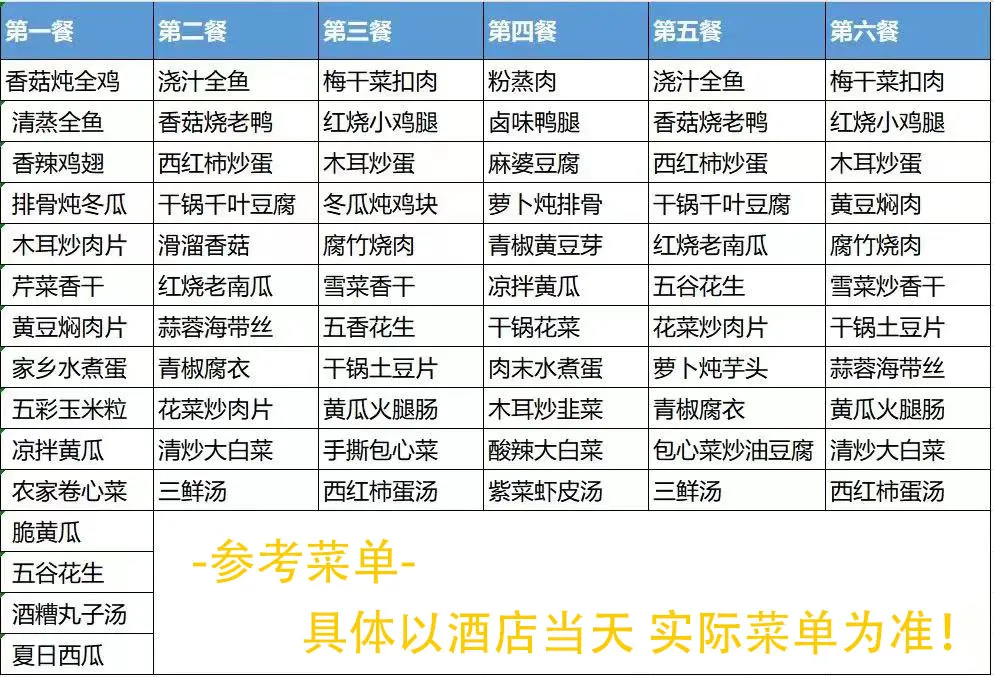 4、用餐:送5早8正餐(10人围桌,人数增减,菜品增减)