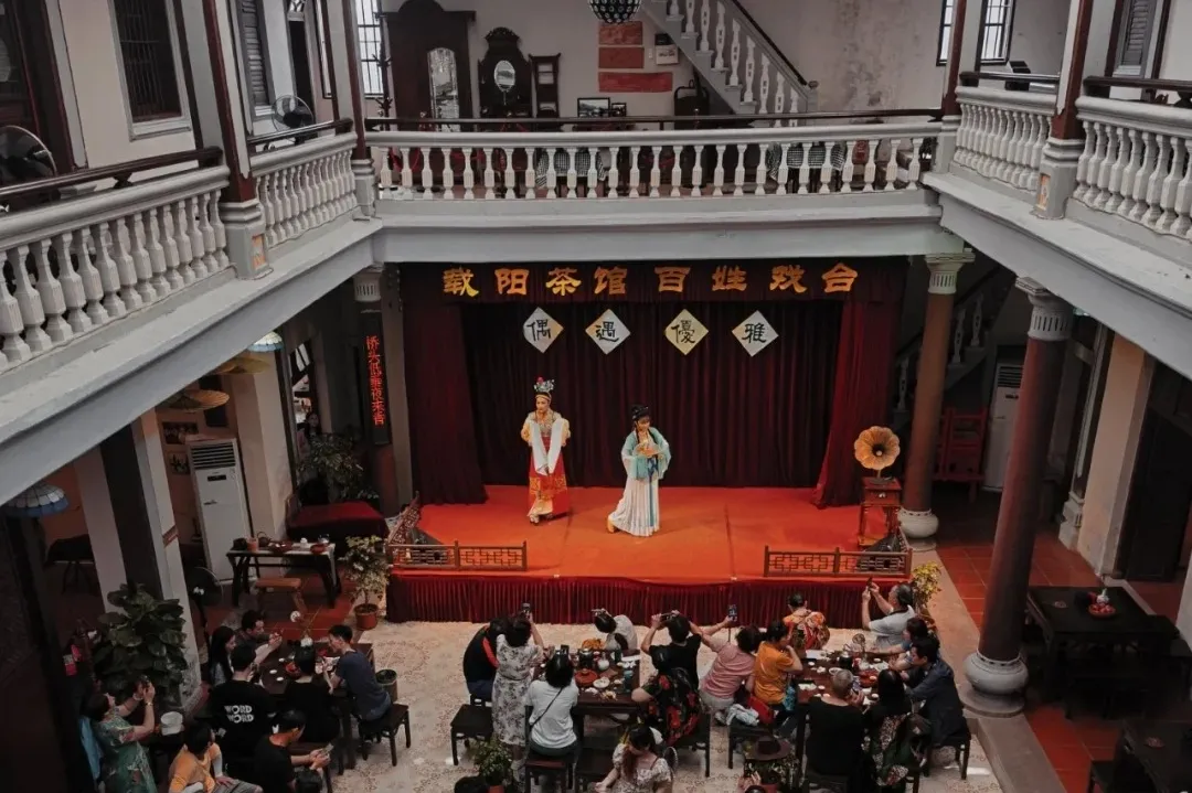 ◈在古城牌坊街的郑厝巷内有一座新隐藏在居民区中的【老茶馆】游览约60分钟含:门票+茶位费+听曲),是古城目前规模最大、占地面积最大的传统工夫茶馆,集潮汕工夫茶文化、潮汕戏曲(潮剧)文化、民俗音乐于一体的体验中心。环境明亮宽敞,有格调又不失传统文化特色,坐在茶馆看戏听曲品茶香,感受宁静致远、慢悠悠的“最潮汕”的生活!