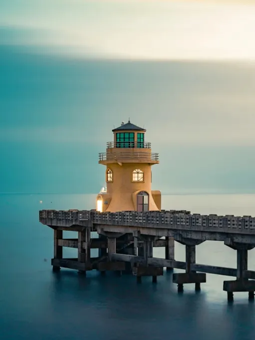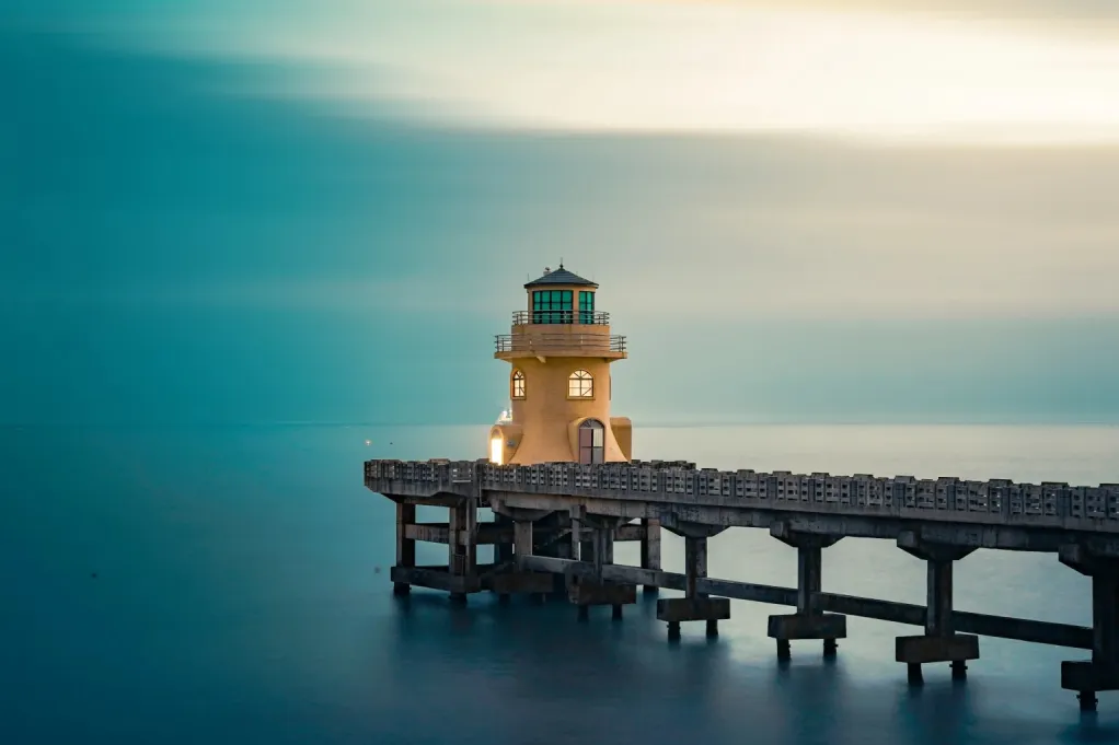 ◈前往游览【长山尾码头灯塔】距离南澳大桥不远处,许多新人都会来此拍摄婚纱照,可见这个灯塔的颜值之高。