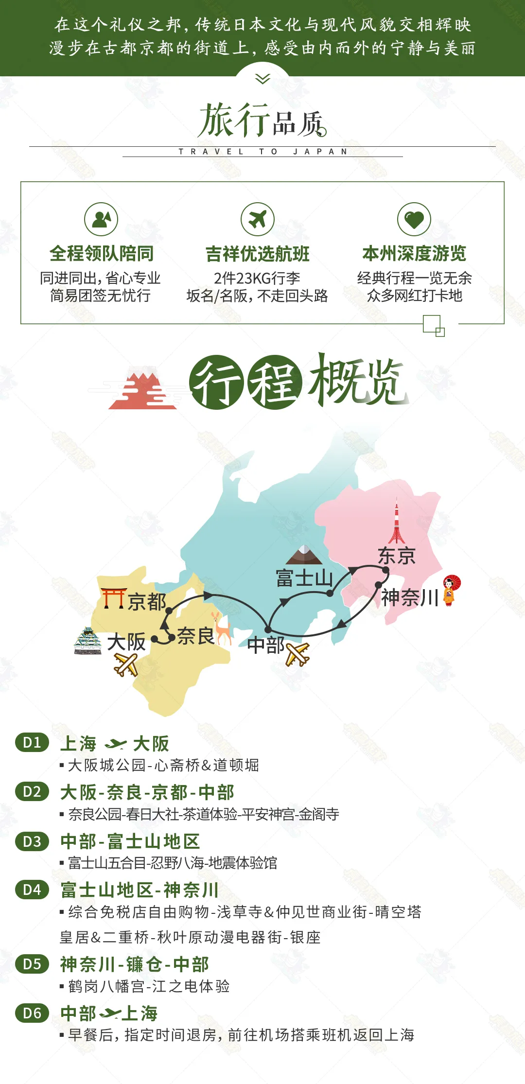 ◈贵宾根据航班时间自行前往机场,由领队带领办理出境手续,搭乘国际航班飞往日本,开始期待已久的日本之行。