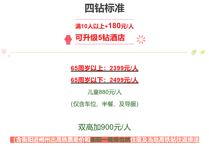 5、四钻单房差:双卧500元/人 双高铁600元/人