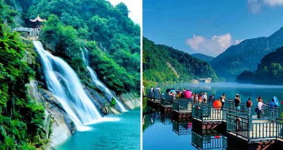 东江湖1号线—龙景峡谷瀑布群—乘摄影船—白廊大东江湖环湖路—流华湾古村