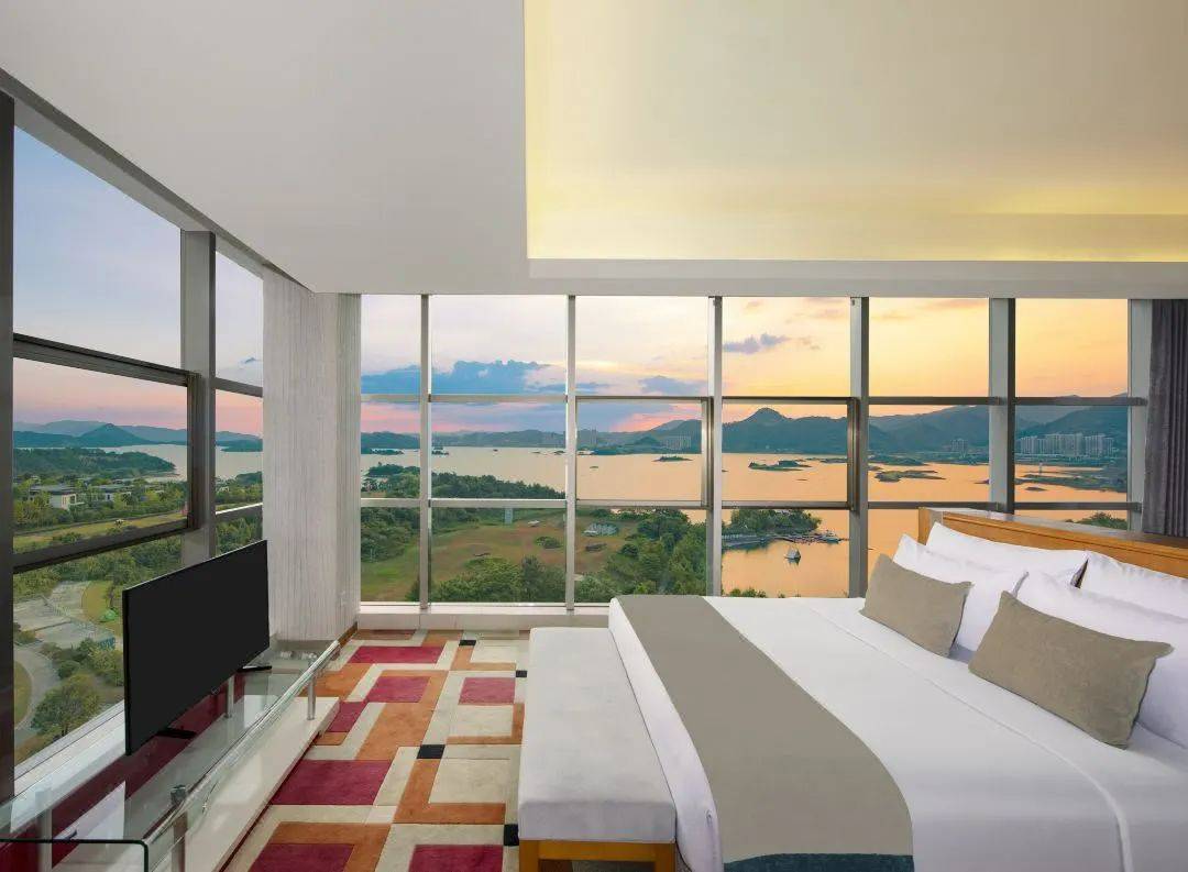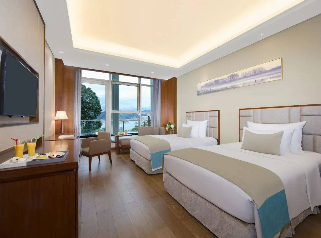 酒店拥有百余间豪华客房,房间宽敞舒适,让您尊享私人空间和怡人的千岛湖美景。酒店提供千岛泉水泡龙井茶,拥有独立淋浴房及超大浴缸,湖光山色尽收眼底。