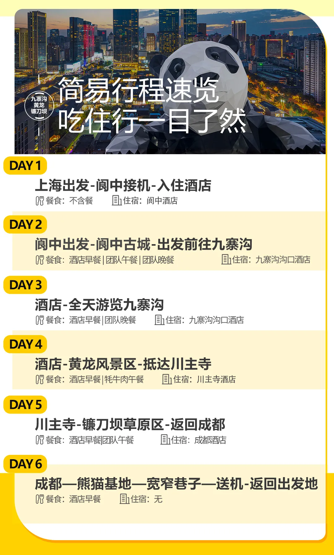 2. 门票:九寨沟、黄龙、熊猫基地首道大门票