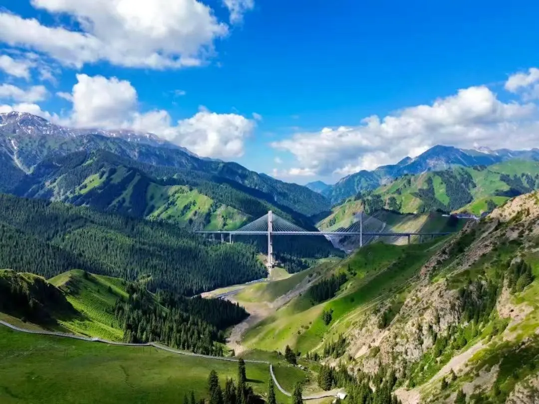 ◎后乘车穿越新疆第一高桥【果子沟大桥】欣赏秀丽壮观,惊心动魄的果子沟风光。它宜人的风景被誉为“伊犁第一景”“奇绝仙境”。