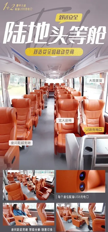 九寨沟段升级2+1航空大巴,再也不怕路途遥远,智能坐躺着,自由切换,躺着去九寨沟