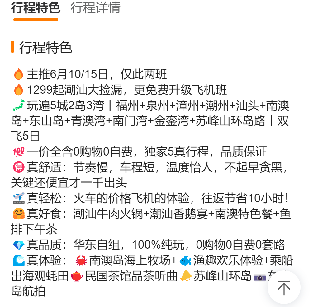 9、此行程单不保证具体的航班号及航班时间,仅保证行程安排,具体航班以出团前确认为准。火车票不保证车次铺位等特殊要求,机票需游客自行值机选座。