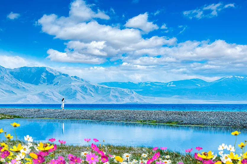 乘车前往【赛里木湖景区(大巴车环全湖)】(游览约3.5小时),是新疆境内面积最大的高山内陆湖泊,又是大西洋暖湿气流最后眷顾的地方,因此有“大西洋最后一滴眼泪”的说法。赛里木湖集雄奇、秀丽、壮阔于一身,一年四季都能看到不一样的美景。春天冰雪融化,春暖花开;夏天草长莺飞,花海如潮;秋天天高地阔,苍茫唯美;冬天千里冰封,万里雪飘。沿着湖边的公路一路向前,每个停靠的站点都不容错过。克勒涌珠,景色最美的地方,也是婚纱摄影的胜地;成吉思汗点将台是摄影爱好者的天堂,在这里可以一览赛里木湖全景;五月中旬到七月初的海西,满山遍野的野花;公路照、湖泊照、雪山照随意一拍都是你想要的大片。拍够了便乘车继续绕湖前行。爱好徒步者可沿着木栈道在湖边漫步。