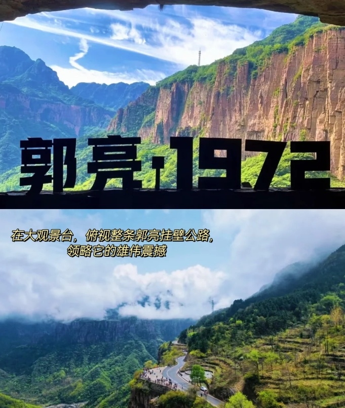 上午:乘坐小车穿越惊险刺激的昆山挂壁公路(车程约 1 小时),昆山挂壁公路是南太行七条挂壁公路中最为年轻的一条,其工程之艰险、景色之壮美令人震撼。