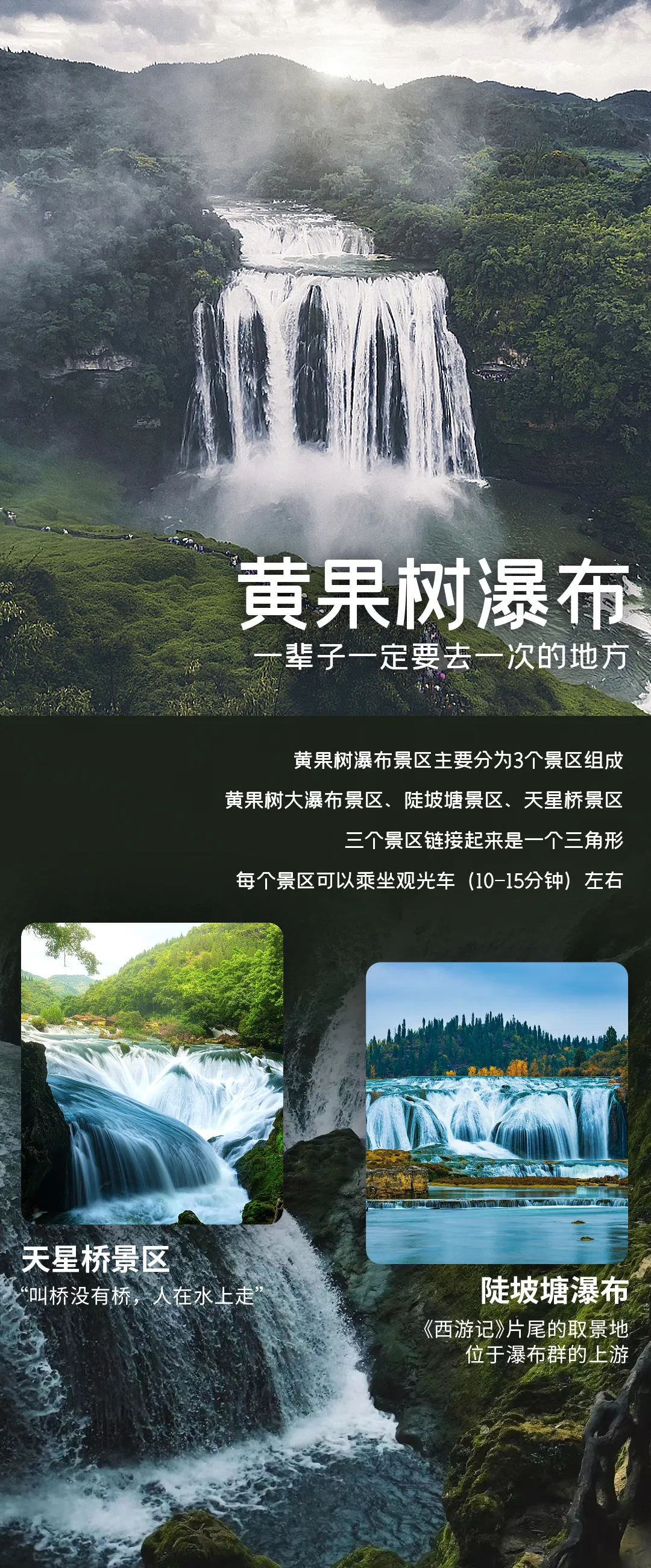 今日车程:贵阳→(车程约 2.5 小时左右) 黄果树景区→(车程约 2.5 小时左右)甲秀楼
