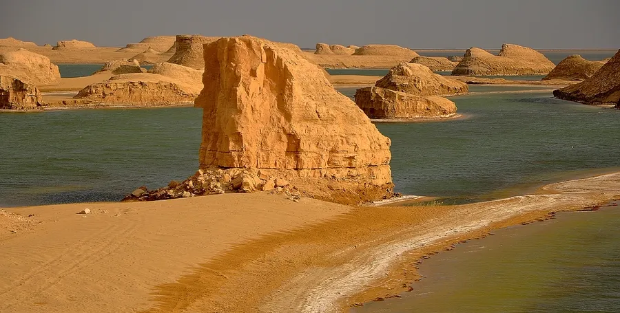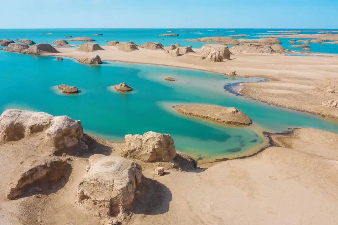 水上雅丹,【乌素特水上雅丹,游览约2h】乌素特水上雅丹地质公园是一处水上雅丹地貌,因为吉乃尔湖面抬升,逐步淹没北缘的雅丹群,形成了独特的水上雅丹。景区内从朝霞满天到日暮垂落都如梦似幻,阳光照在水上雅丹上,颜色金黄,石柱和倒影感觉升到了半空中,像悬浮的魔幻城堡。