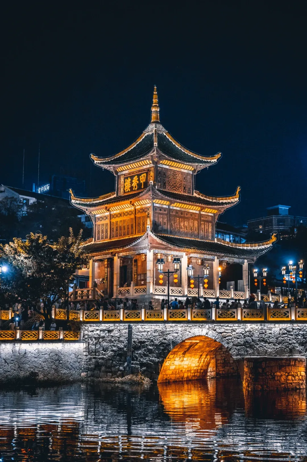 游览完毕前往【甲秀楼】,贵阳的标志性建筑,它始建于明代,坐落于市区内南明河中的一块巨石上,是一座三层的木质阁楼,甲秀楼是来贵阳的游客必去的景点。