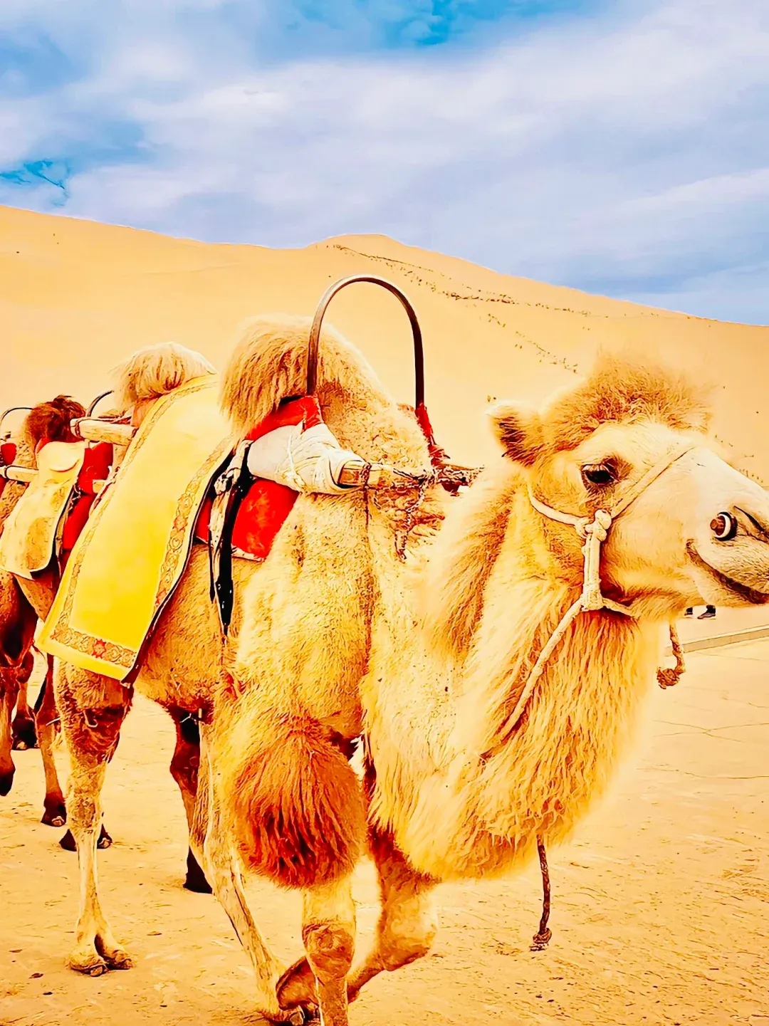 【鸣沙山月牙泉】 国家 5A 景区、 被誉为“沙漠之眼”,呈现沙不掩泉、泉不枯竭的神奇美景。