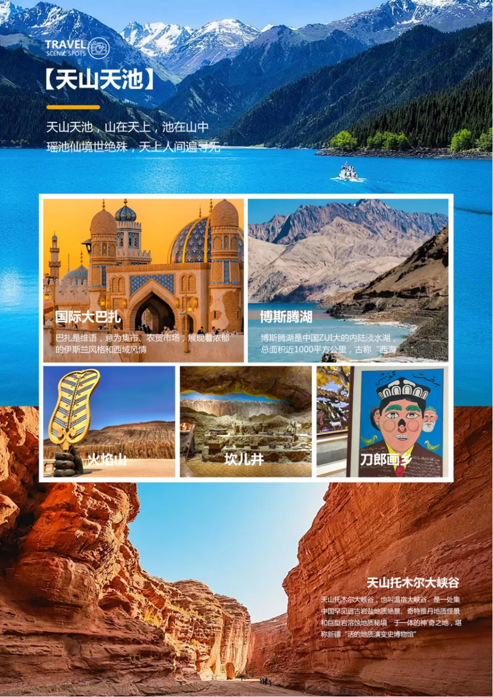 到“大美新疆”游大漠风光,品西域风情,看神奇新疆!这里有辽阔的草原,秀美天池,还有拥有神秘传说的秀丽喀纳斯,神的后花园-禾木;这里瓜果飘香,人们热情善良,充满异域风情,这里也是吃货的天堂。
