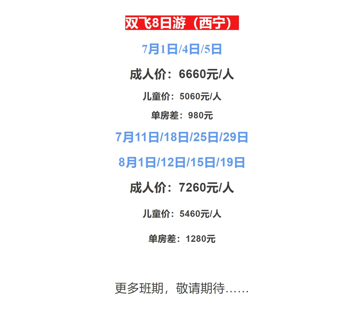 3.此线路不接受儿童按成人报价报名,敬请谅解!