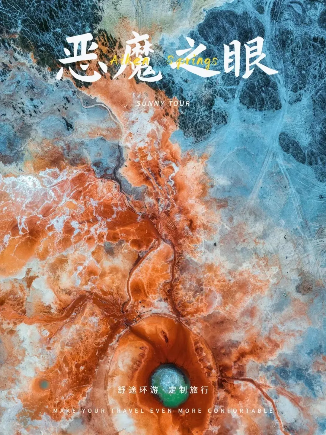 这是戈壁之中的恶魔之眼,是被无人机拯救的茫崖美景。其实就是一个形状酷似瞳孔造型的地热泉眼。这里的土地是黄褐色以及土褐色相间的,显得有种苍凉之感。
