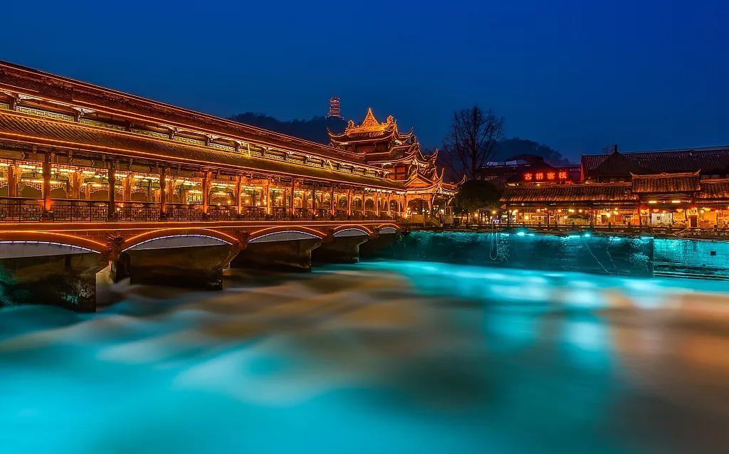 可以自由活动自行前往游览【都江堰南桥】南桥两岸的夜色被霓虹装点得绚烂了一池的江水,泛着梦幻般的色彩,夜晚的南桥充满悠闲的生活味。晚餐不含,西街有很多本地人常去的饭馆或小吃店,可自由觅食和选择,好吃又不贵,品尝当地特色小吃。