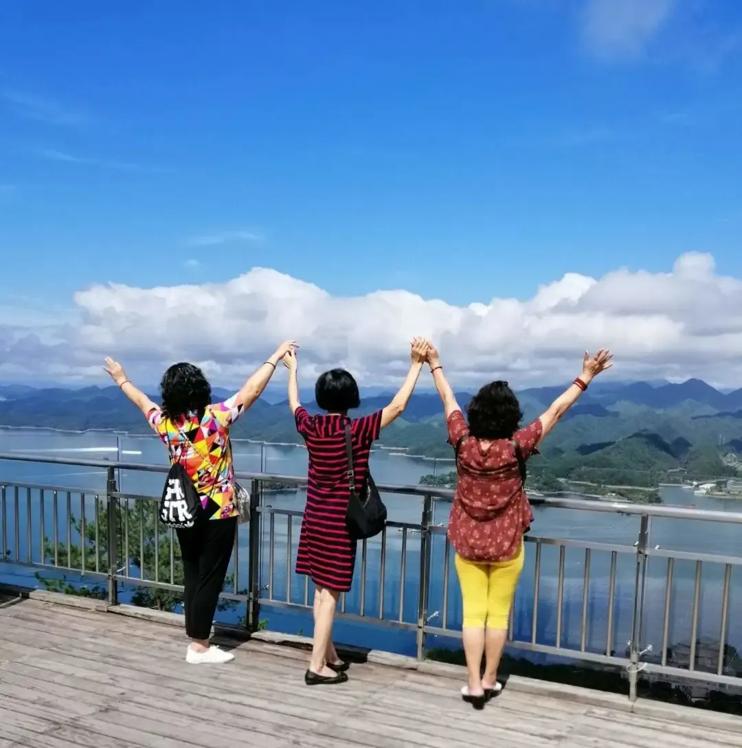 随后自愿前往游览中心湖东南湖区【云海观景台】(门票小交通不含,自愿自理,满20人成团)为千岛湖新开出的绝美观景之地,90%的游客都不知道的新晋景点,位于千岛湖与新安江大坝之间,海拔300米左右一览众山小,登高望远,可俯视千岛湖中心湖东南湖区大小岛屿可远眺新安江水电站。观景台顶峰幽静小道深处藏着一棵十全十美许愿树,许愿树一根生成十枝干十人围抱也是云海观景台必去打卡点。