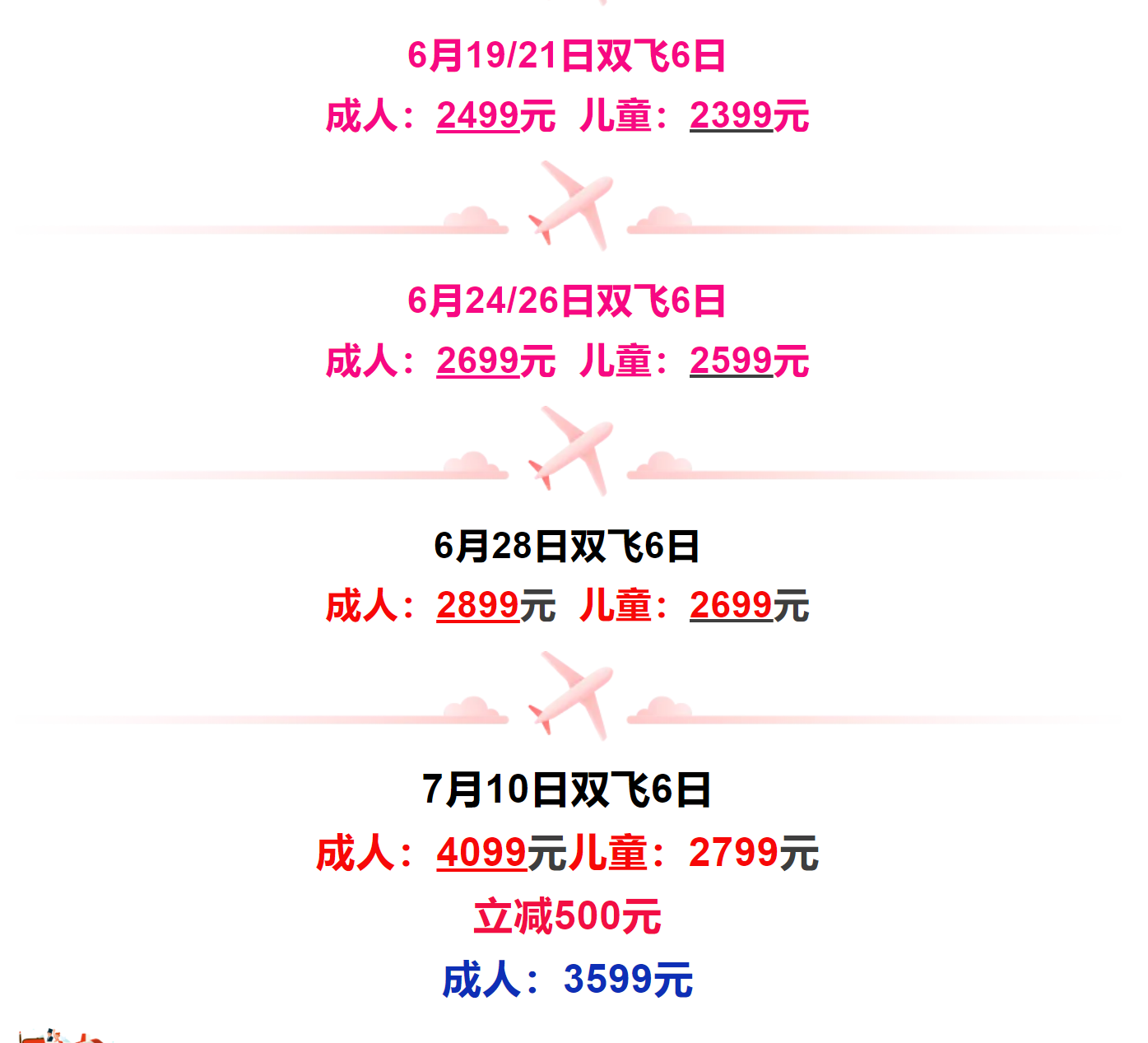 3. 单房差:不含自然单房差,如需单人入住一间房或携带异性儿童时,则需要补交单房差。