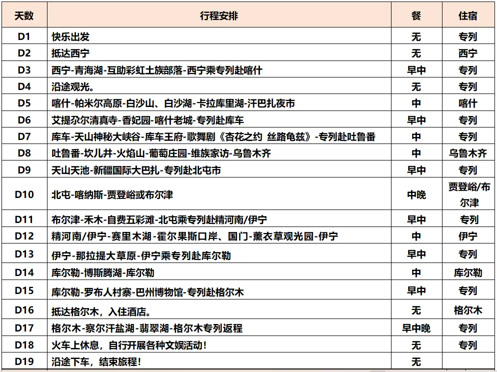 特色4😍专列是经铁路总公司特批的全列卧铺火车,整趟专列只有工作人员和游客,非常安全;火车全程不更换,减少中转旅途劳顿,火车跟着行程走,大件行李不用愁,美丽山河任您游,省时省力省钞票!