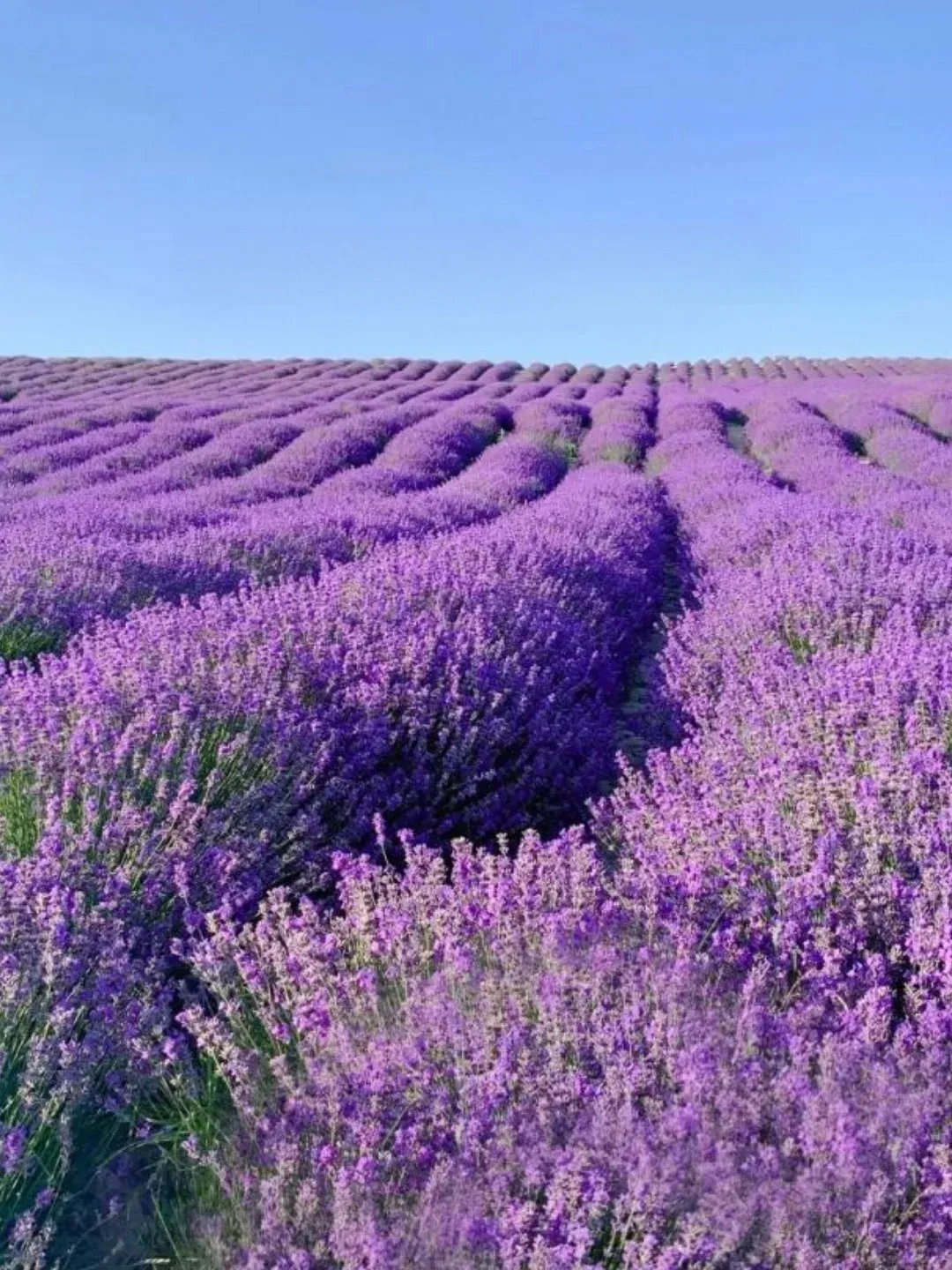 大片的薰衣草 宛如深紫色的波浪层叠起伏,汇成一场醒不过的大地之梦,方圆数里,都笼罩在薰衣草的馥郁芬芳里;