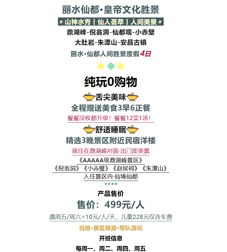 3:此行程为农家乐休闲线路,无随车导游,景点由地接工作人员安排。