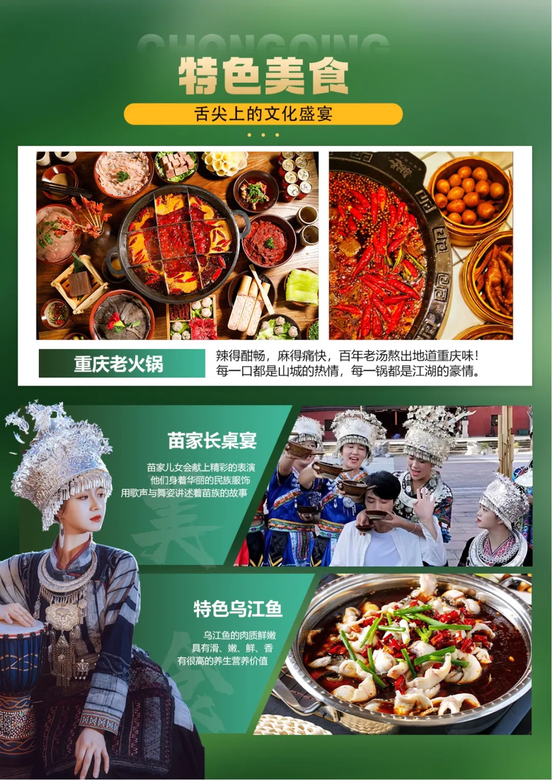 ★巴渝美食:含4早3正(升级1餐重庆特色火锅+特色乌江鱼+苗家长桌宴)