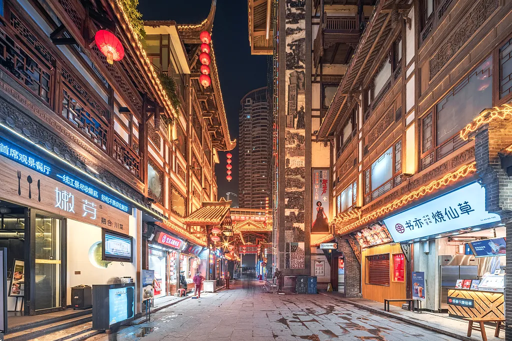 ◈约17:00游览【洪崖洞】,位于重庆直辖市核心商圈解放碑沧白路,长江、嘉陵江两江交汇的滨江地带,坐拥城市旅游景观、商务休闲景观和城市人文景观于一体。以具巴渝传统建筑特色的“吊脚楼”风貌为主体,依山就势,沿江而建,解放碑直达江滨。
