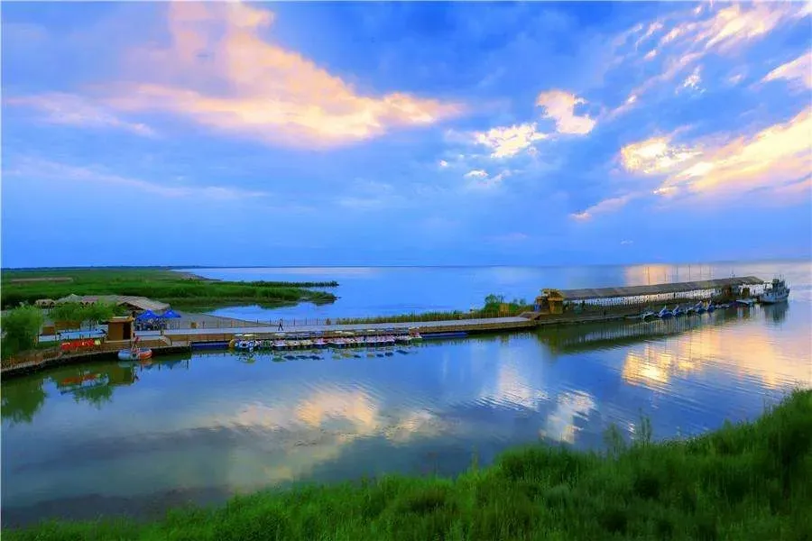 如果运气好的话,在这里可以碰见大雁飞过,落日映衬着一字排开的大雁,此情此景只应天上才有。