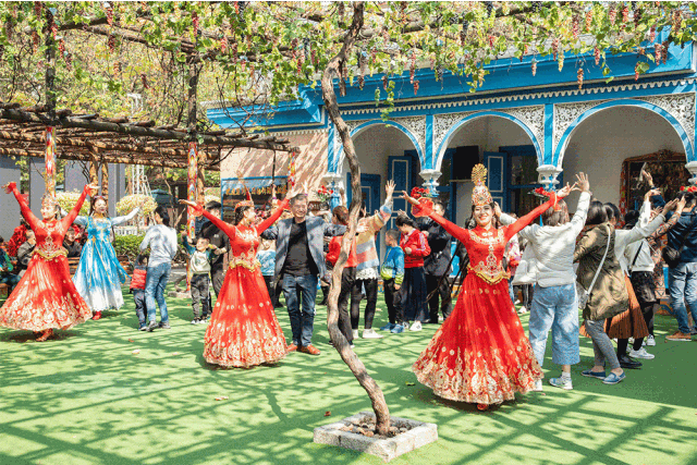 早餐后,前往国家5A级景区【喀什古城】,参加【开城仪式】,在喀什噶尔古城东门,老城民间艺人身着盛装表演仿古入城仪式, 民俗歌舞表演,集民族音乐、舞蹈元素于一体的仿古入城仪式,再现了千年古城喜迎贵宾的独特礼遇。后参观【职人街--手工艺品街】是新疆喀什市区最有特色的人文景点,职人街全称为吾斯塘博依手工艺品一条街,长约一千米,聚集了几百家手工作坊和摊点;美食茶饮一应俱全,俨然成了喀什乃至中亚手工业的精品展览区;一条街逛下来购物、参观、美食三不误,的确是一举多得。在职人街区内自费品尝当地正宗特色小吃、茶饮,其中有一家喀什本地最富特色的维吾尔族“【百年老茶馆】”;可以听着维吾尔族传统的乐器演奏;品着维吾尔族红茶;细细体会那般闲适;参观全国最大的清真寺—【艾提尕尔大清真寺】(游览约 45 分钟),以阿拉伯建筑特色与维吾尔建筑风格融于一体而建造的一座有着浓郁民族风格和宗教色彩的伊斯兰教古建筑群。后享用午餐后参观【香妃园】(游览约120分钟 ) 香妃园因“香妃”而得名。景区1988 年被评为国家级重点文物保 护单位。2014 年开始打造提升 ,2020 年 8 月份基本改造完毕,改造后占地面积从 70 亩增加到 300 亩, 建筑风格突出传统建筑和现代元素相融合,分别从故里、故居、故人三个方面讲述了香妃从出生到去世, 从喀什到北京,从贵族公主到集万千宠爱于一身的传奇故事。参观游览后前往喀什站,后乘专列前往哈密。