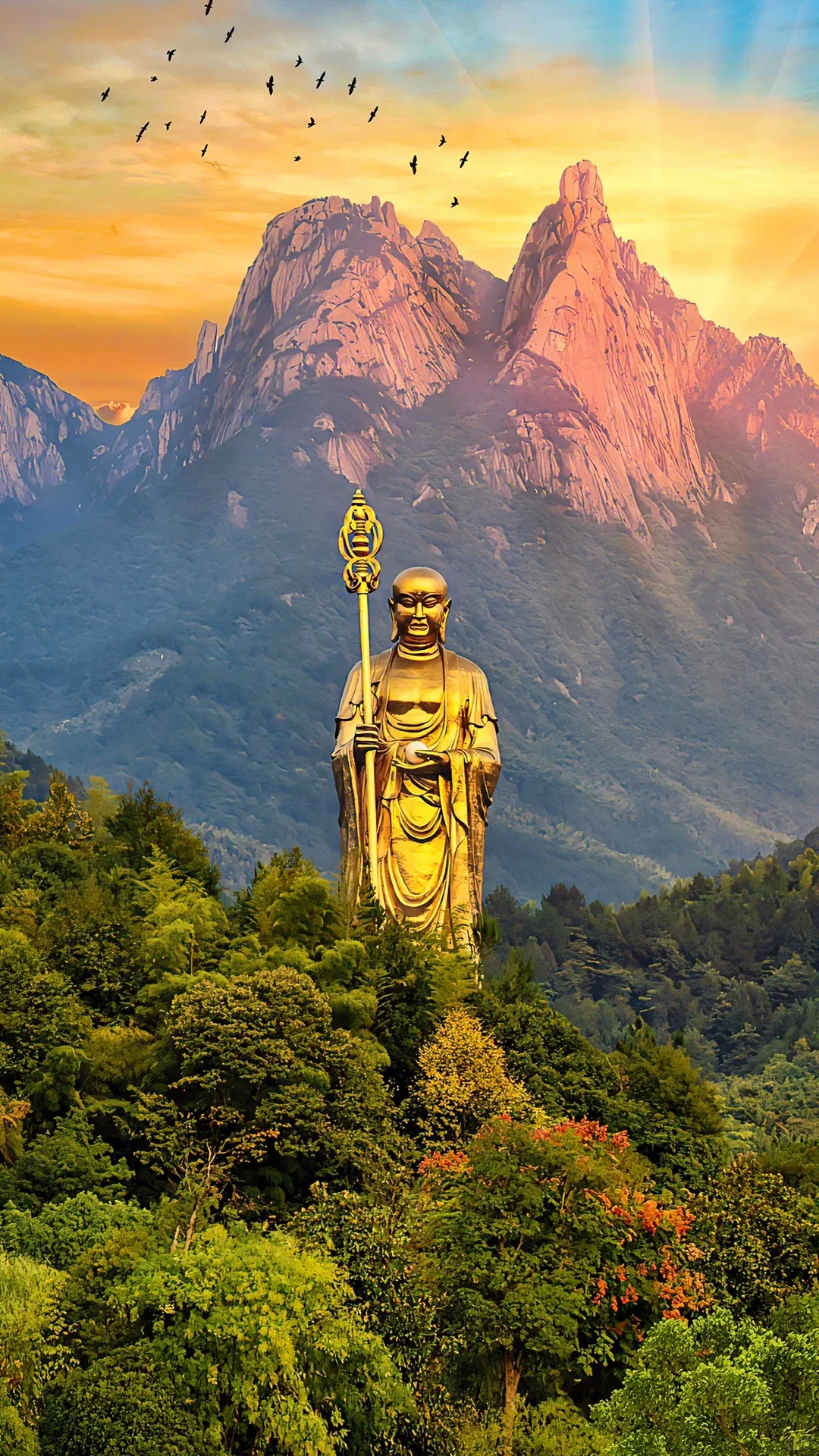 今天重点游览一个能让菩萨都忍不住发朋友圈的“佛系顶流基地”——【九华山大愿文化园】(赠送游览,约2小时)这里主打地藏菩萨的“大愿”套餐,99米高的金光铜像往那儿一站,方圆十里的鸽子都学会了双手合十——毕竟佛光普照的WiFi信号满格,连扫地僧的扫把都能自动避开功德箱!(友情提示:千万别和铜像比身高,容易怀疑人生)。逛园子能解锁“佛系养生三件套”:看金殿闪瞎钛合金眼、听梵音洗脑单曲循环、闻檀香腌入味,门口扫码烧电子香,功德箱支持支付宝,连护身符都分‘脱单款’和‘暴富款’。必打卡操作:1. 摸一摸1300岁的银杏树(据说能蹭到‘不老BUFF’);2. 偷听导游讲‘地藏菩萨的留学故事’;3. 在斋堂抢素鸡腿(演技要好,否则会被看穿你是肉食动物)。最卷的是求签区,年轻人边摇签筒边默念‘菩萨,我选C!’。还有重头戏“飞天表演”直接拉满仙气值!仙女们踩着云梯玩空中瑜伽,绸带甩得比双十一快递还飘逸,特效炸到观音看了都想点打赏——知道的说是佛教艺术,不知道的以为天庭女团下凡KPI考核!(温馨提示:带好自拍杆,拍视频发抖音能喜提“赛博功德+10086”,比抢头香还灵!)