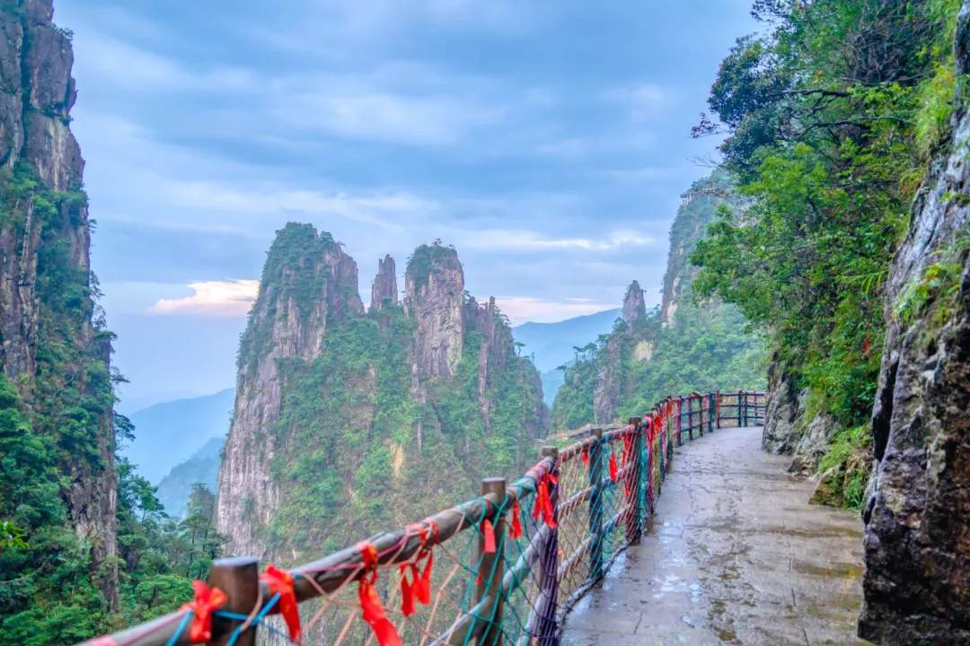 (门票已含,索道费用自费小交通已含,游览时间共计约3.5小时)五指峰景区有衡山之秀华山之险,有张家界之婀娜有九寨沟之碧绿。平均海拔在1000米以上,山高林密,