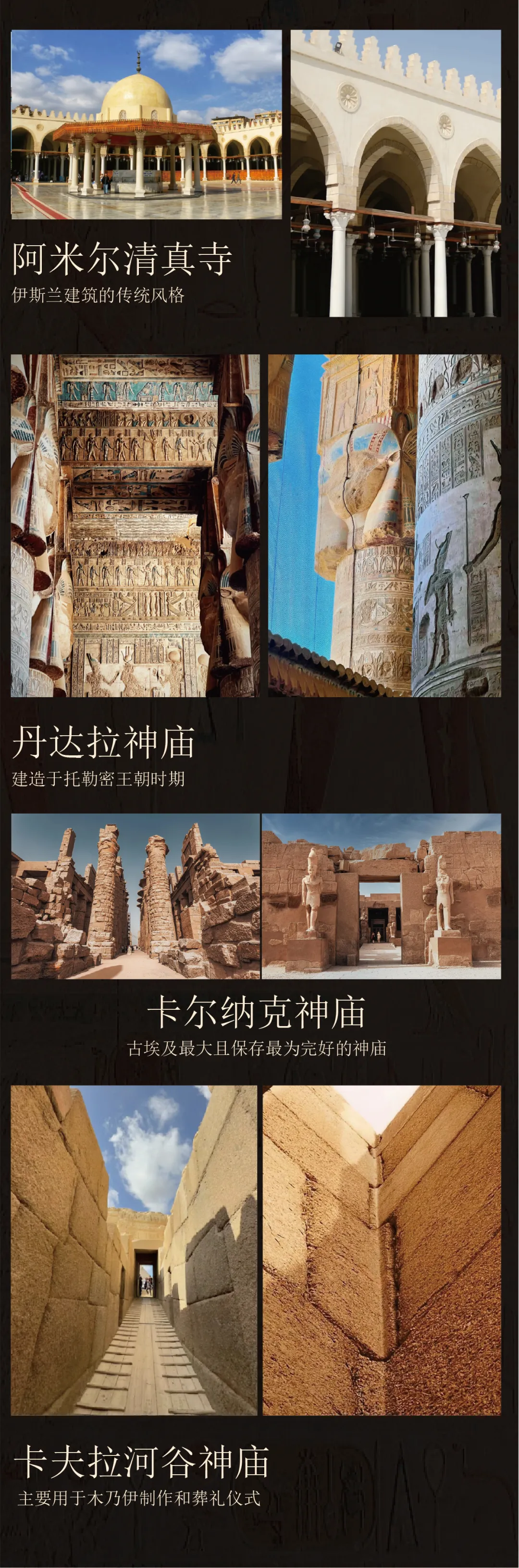● 门票:行程中所列景点标*符号含门票(吉萨金字塔群、大埃及博物馆、丹达拉神庙、卡尔纳克神庙),其余景点未标注“入内”均为外观;
