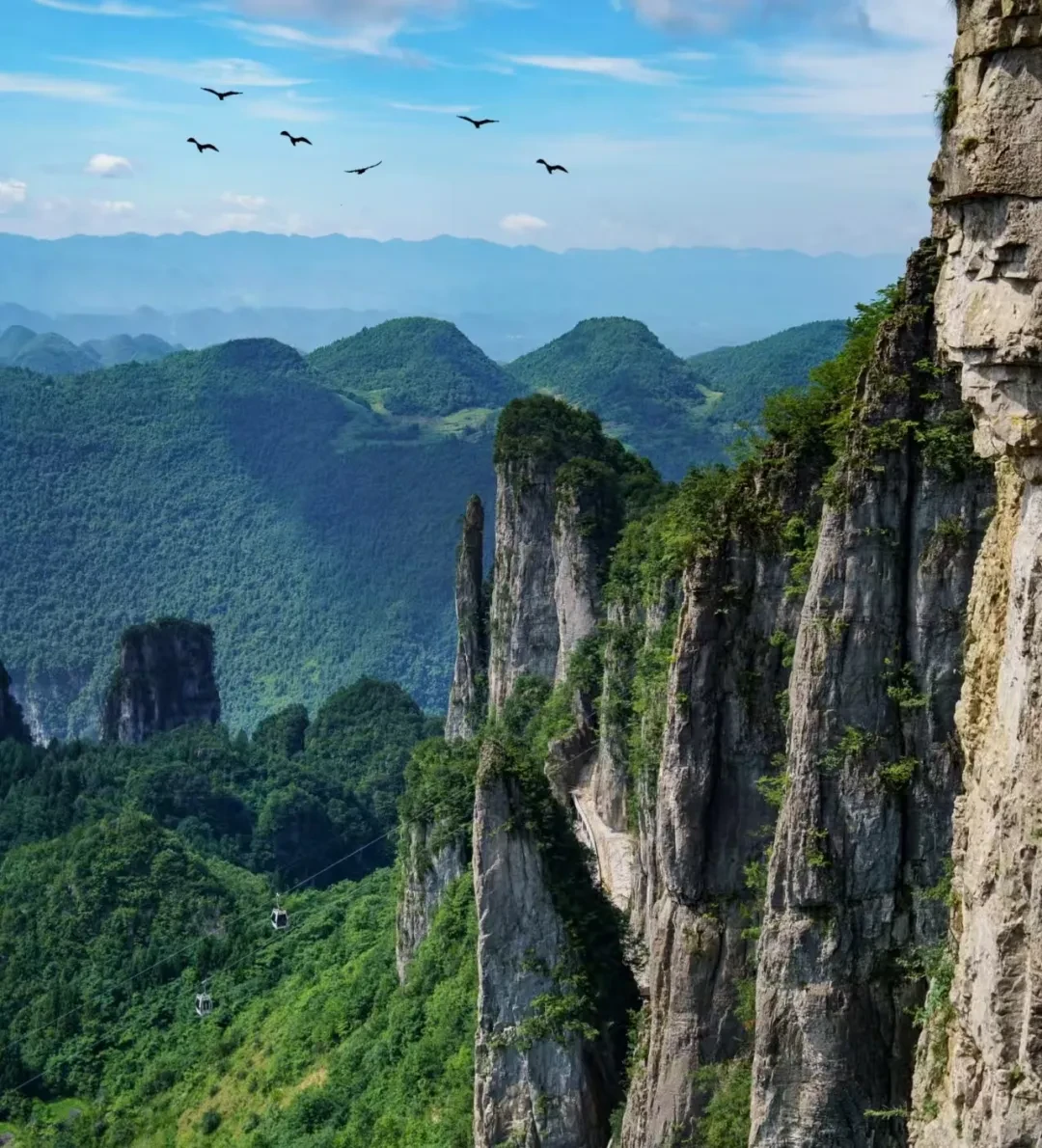 张家界的美景宛如人间仙境,这里是中国著名的5A级风景名胜区,以独特的喀斯特地貌和令人叹为观止的自然风光著称于世。这里的自然景观不仅美轮美奂,而且充满了神秘与魅力,让人仿佛置身于一幅流动的山水画中。