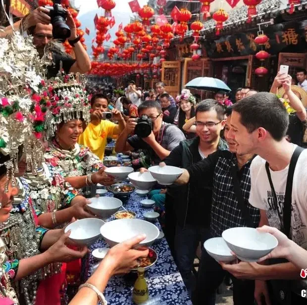 苗家长拢宴:长拢宴是苗族人接待贵宾的膳食。