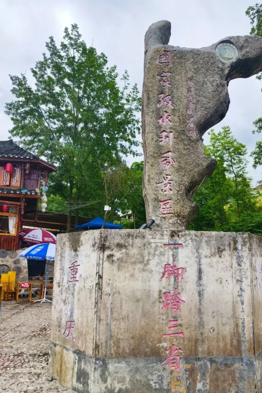 洪安古镇地处重庆、贵州、湖南三省市交界之 地,这里又有“一脚踏三省”之称,是“渝东南门户”。对面是湘西的茶峒镇,也就是大作家沈从文的小说《边城》的原型地,现在改为 边城镇。