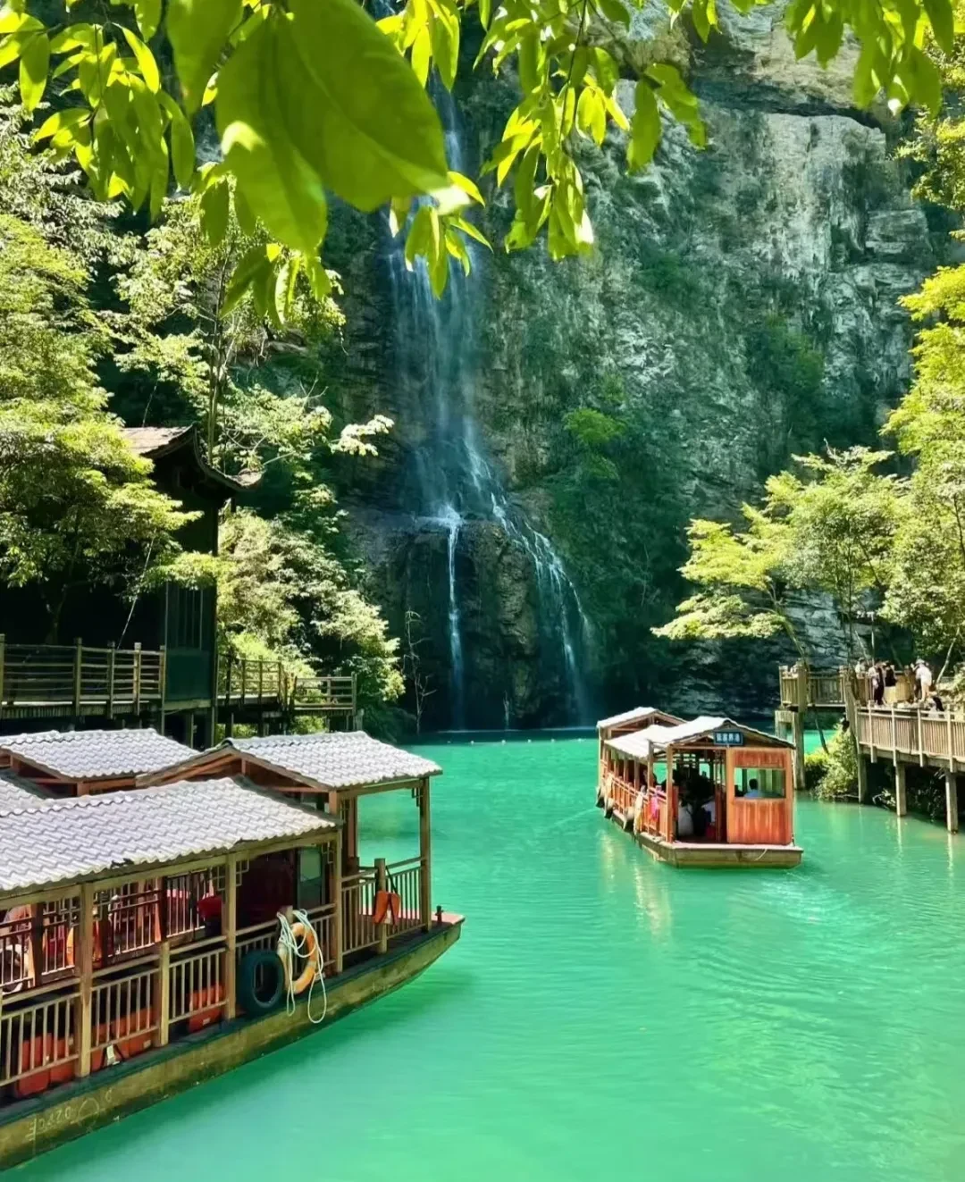 早餐后:后参观游览人间“瑶池”——【宝峰湖】(宝峰湖VIP环保车+游船50元/人自理)集山水于一体,融民俗风情于一身,尤以奇秀的高峡平湖绝景、“飞流直下三千尺”的宝峰飞瀑、神秘的深山古寺闻名,观赏宝峰飞瀑、仙女照镜、石门迎宾、孔雀开屏、金蟾含月、神龟出水等栩栩如生的景点,泛舟湖上,听水上阿哥阿妹山歌传情、碧水悠悠鹭鸶捕鱼。