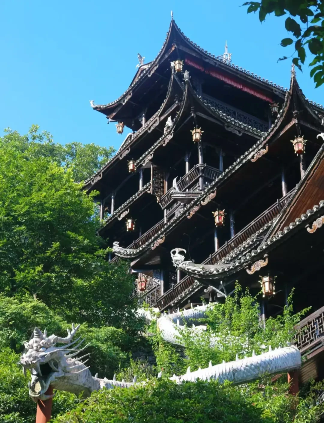 吊脚楼依山而建,错落有致,与周围的自然环境和谐共生,展现出一种独特的建筑美学。在这里,你可以亲身体验到土家族的传统习俗:蕴含着土家族人豪迈与热情的摔碗酒、轻盈欢快的摆手舞、独特而隆重的高山流水酒。