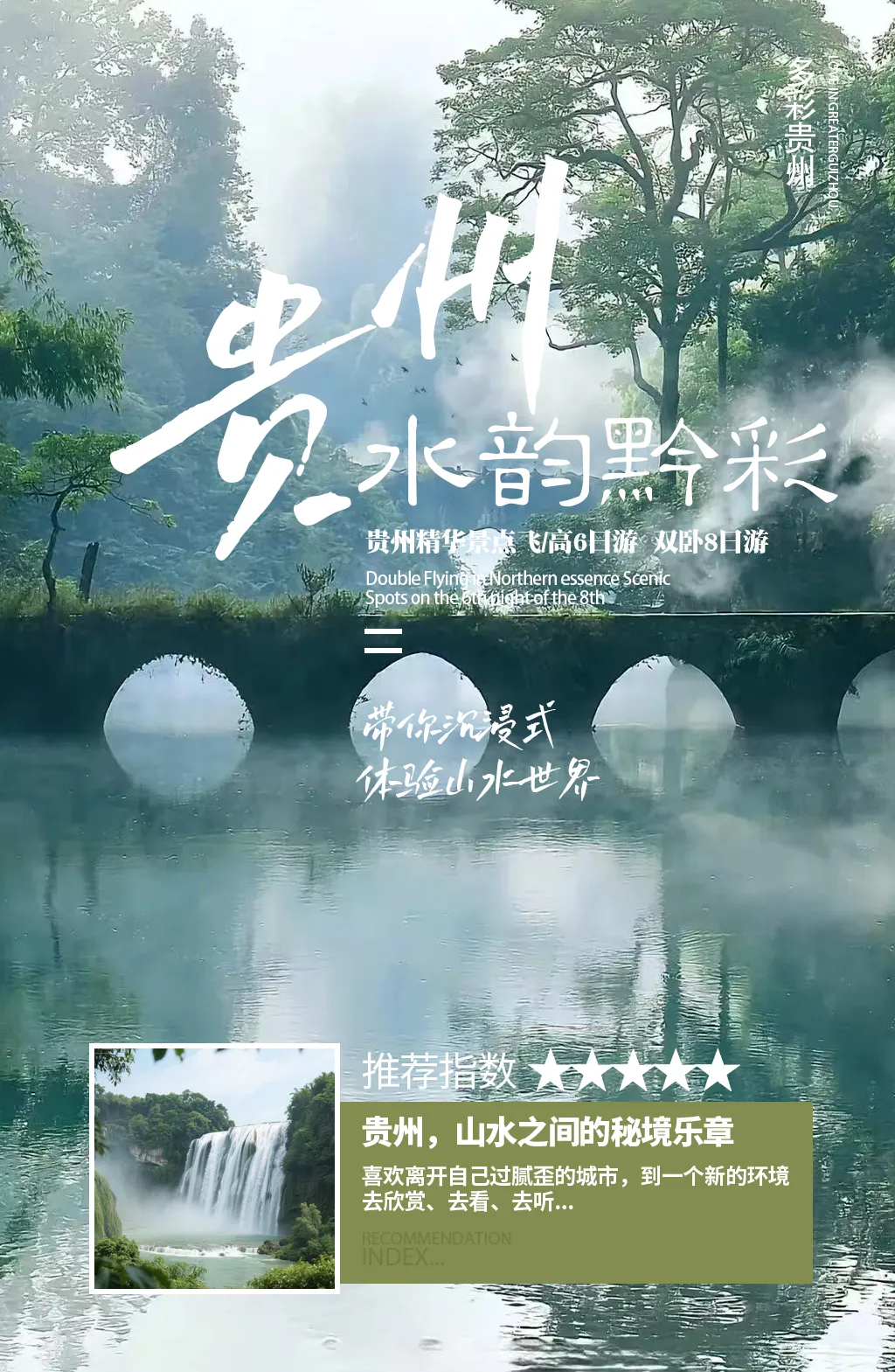 7、【门票景交】所列景点首道门票,黄果树门票、小七孔门票、西江千户苗寨门票、青岩古镇门票。已将相关景点进行优惠打包,成本均为按照景区给予旅行社优惠价核算,因此不再重复享受景区挂牌优惠。