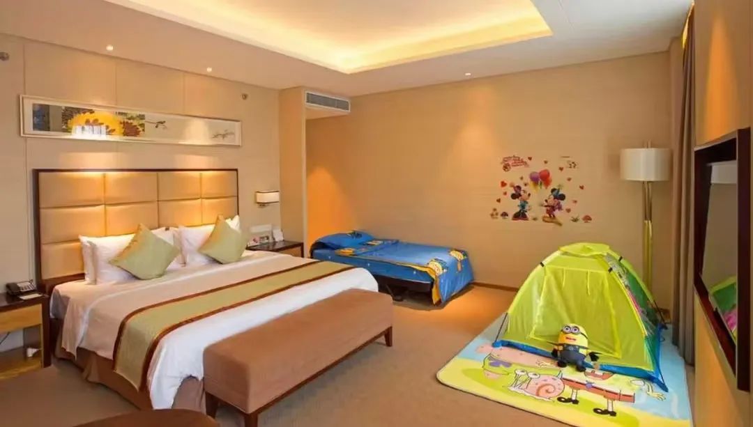 豪华房,房型面积都足够三口之家一同入住,房间内功能区域区分明确,办公桌可以让生活工作两不误,半落地窗让孩子的好奇心完全释放。