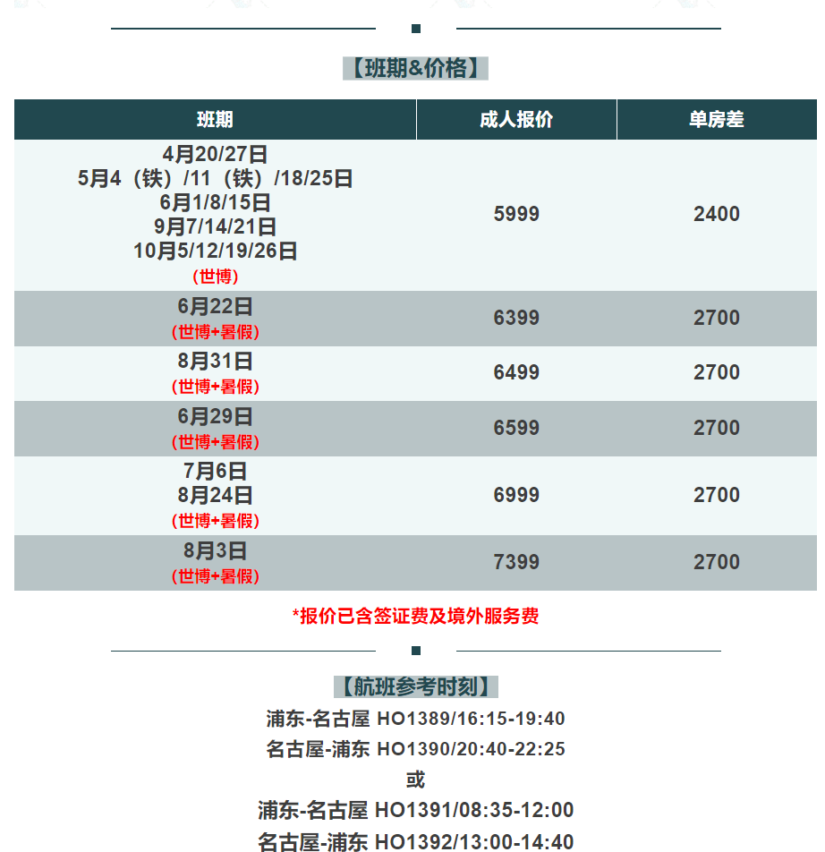 【机票】浦东-名古屋往返经济舱机票含税含行李(手提1件*7KG+托运行李2件*23KG,具体可查询航司官网)团队机票不得改签不得退票。